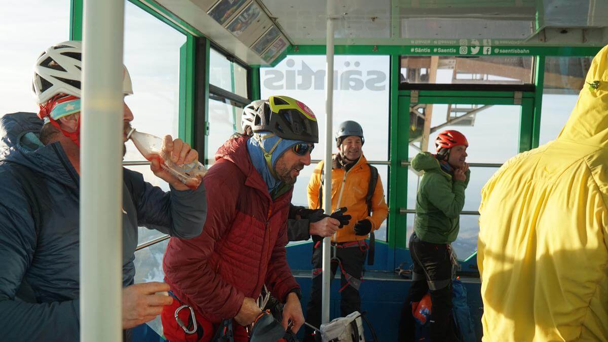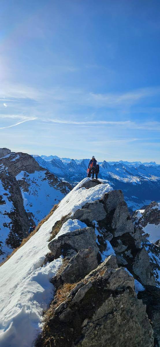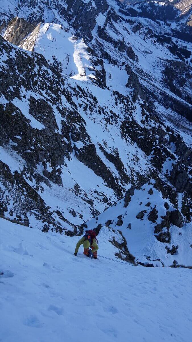 Leiter: Andy Trunz Teilnehmer: Jürg, Marcel, Sepp, Fabio, Raphy, Albert, Ursulina, Mario, Ken Tour: Schwägalp – vor dem Stoosssattel auf den Grat – über die Silberplattenchöpf bis Ausstiegscouloir – Stütze 2 – mit Sonderfahrt zurück ins Tal