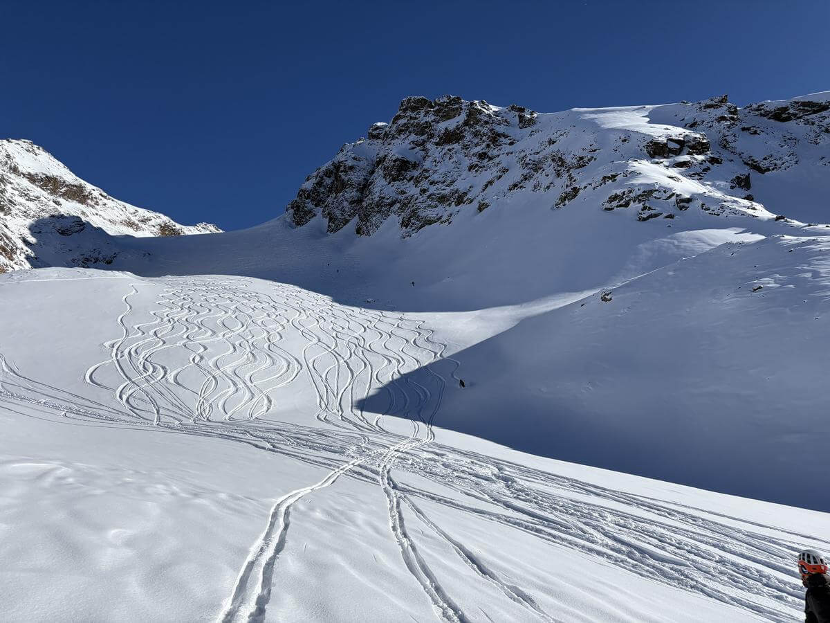 Leitung: Marcel Ackermann und Albert Fritsche Teilnehmer: Mario Inauen, Migg Hehli, Roman Lehmann, Thomas Locher, Mark Mazenauer Tag 2: Bielerhöhe – Skidepot Schneeglocke (3190)